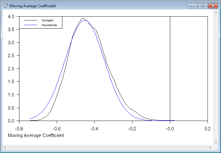 It does 2500 burn-in and 10000 keeper draws. It saves the full set of ARMA model coefficients, thus the CONSTANT, AR(1) and MA(1) coefficients in that order into the SERIES[VECT]BGIBBS.