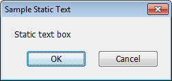 dbox(action=define,title="Sample Static Text") dbox(stext="Static text box") dbox(action=run) |
