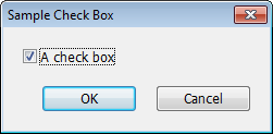 declare integer on dbox(action=define,title="Sample Check Box") dbox(checkbox="A check box") on dbox(action=run) |