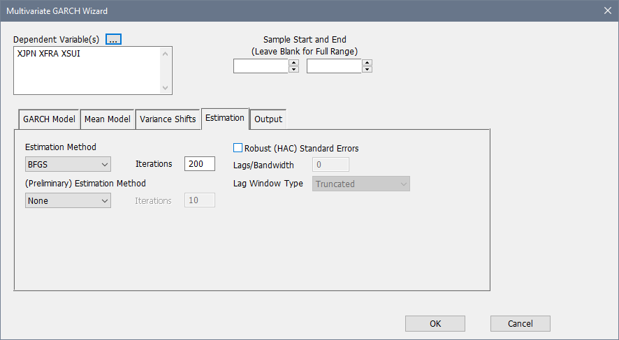 Wizards / ARCH/GARCH(Multivariate) Wizard |