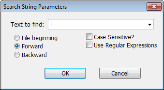 These control the type of search. By default, this is set to Forward, which searches from the current cursor position (or end of selected text) towards the end of the file. File beginning searches from the top of the file. Backward searches from the current cursor position (or beginning of selected text) towards the start of the file.