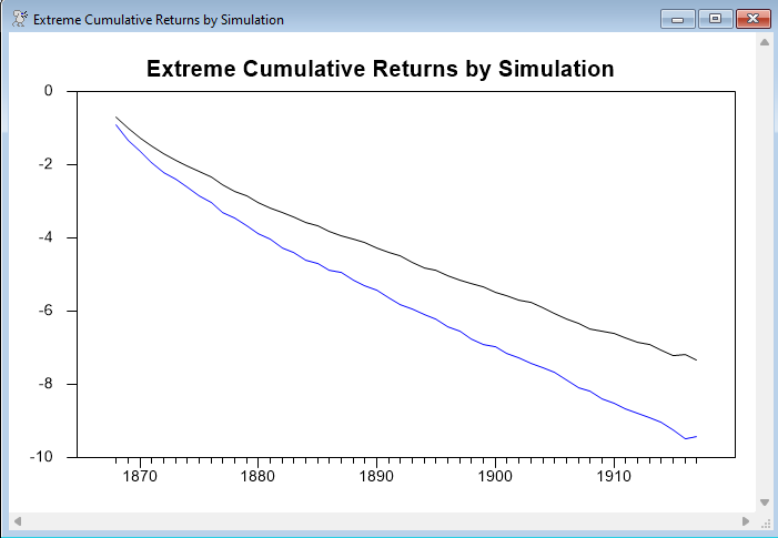 graph(header="Extreme Cumulative Returns by Simulation") 2