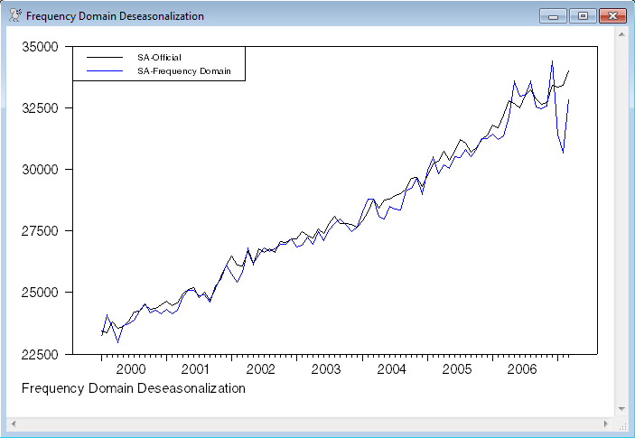 * Graphs the deseasonalized series with the "officially" adjusted series.