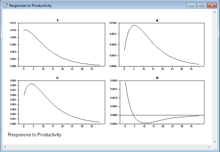 variables=||"Y","C","K","R"||,shocks=||"Productivity"||)
