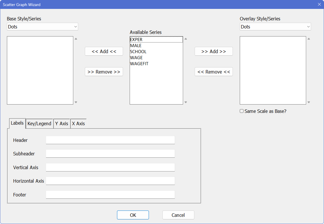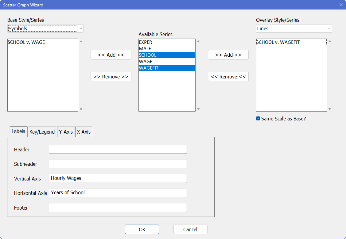 Select (highlight) both WAGE and SCHOOL from the "Available Series" list and click on
