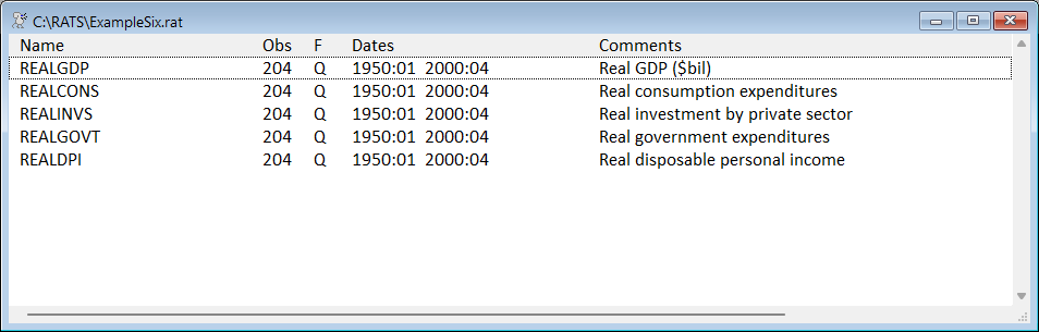 DATA(FORMAT=RATS) 1950:01 2000:04 REALGDP REALCONS
