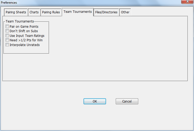 Below is a picture of the Preferences dialog box shown with the "Team Tournaments" tab selected: