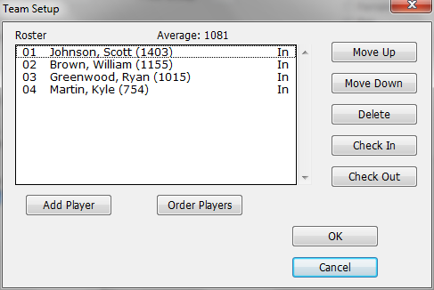 Deletes the selected individuals from the roster. You can only do this if they have not yet played any games. If a player has to leave, you can withdraw him from the tournament using the Check Out button.
