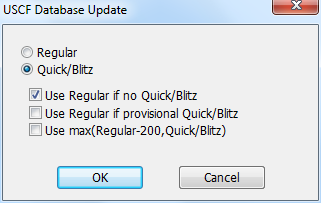 Regular chooses the regular ratings, Quick/Blitz chooses whichever of the Quick/Blitz ratings you downloaded. The three checkboxes shown only appear if you choose Quick/Blitz.