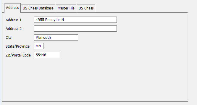 This tab is available only if you are adding/editing a player on a Master Player File. If you would like to keep mailing addresses, input address information into the boxes shown. (These are not used in running tournaments).