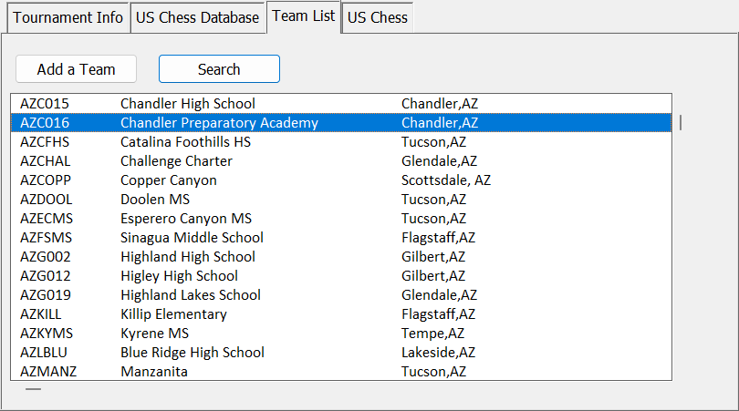 This shows the US Chess Database tab. This will be present only if you have the US Chess database installed on your computer. The main part of the tab is a scrolling window with a display of the information from the database.