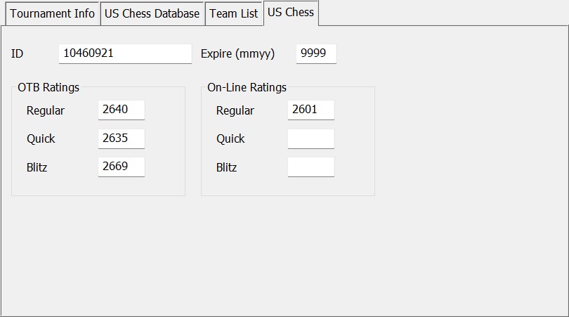 Expiration date of the player's US Chess membership. Use the format "mmyy" for this value. Use "9999" for a life member.