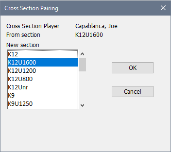 4.Choose the section in which this player will play this round (only). If a player is permanently switching sections, see How To: Reenter Players. A copy of the player's record will be added to the target section.