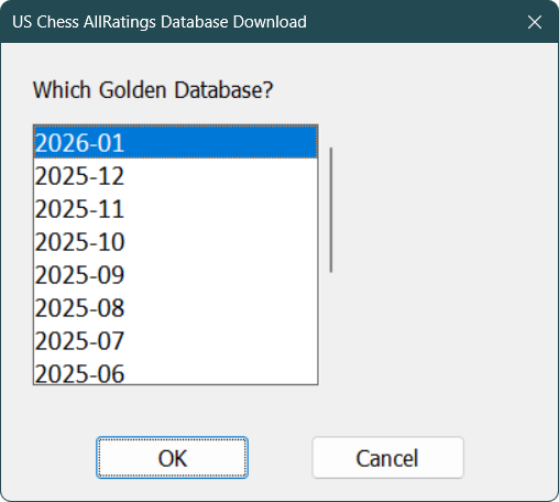 At this time (February 2026), the US Chess>Download US Chess Database... operation is no longer working for retrieving current data. You need to follow the instructions below instead.