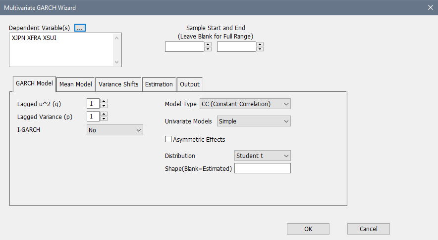 Wizards / ARCH/GARCH(Multivariate) Wizard |