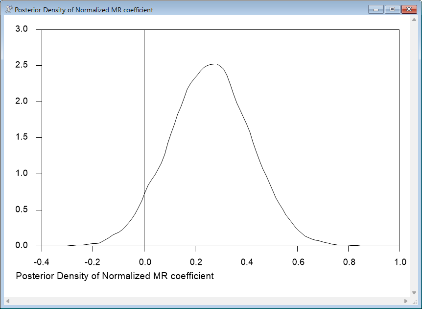 This does a density graph of the normalized (now to a unit coefficient on M, not just positive sign) of the R coefficient in the M equation.