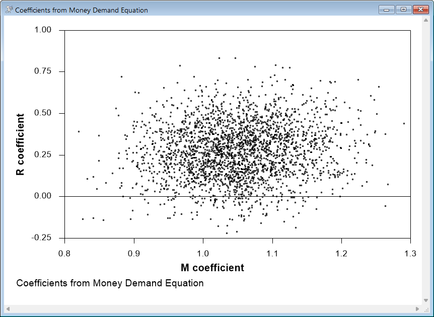 This does a scatter graph of the MR and MM coefficients (from the money equation) which are the 10th and 11th free parameters in the model. (The SMPL option limits this to only 1 in 10 of the points, as drawing 25000 dots takes a while).