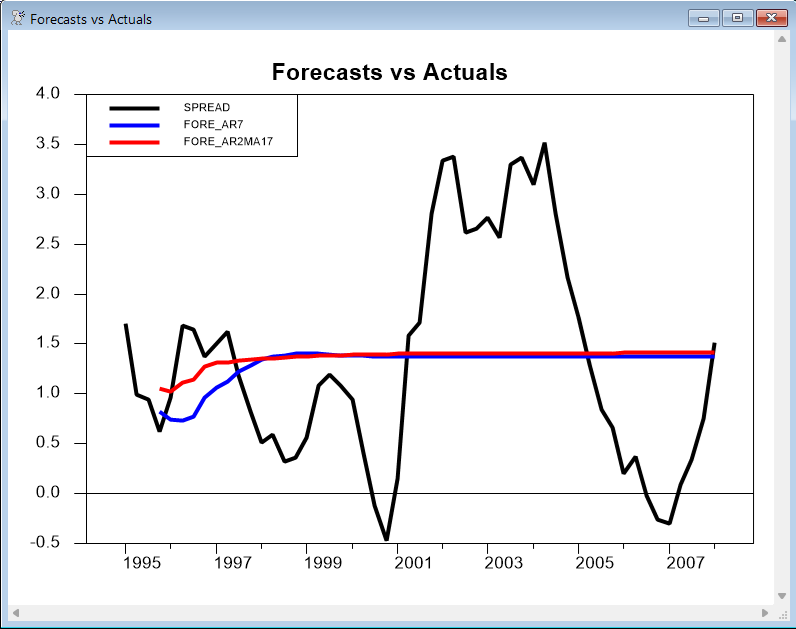 @bjfore(ars=7,constant) spread 1995:4 2008:1 fore