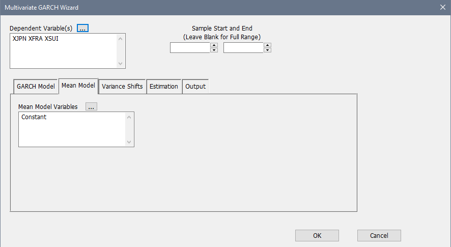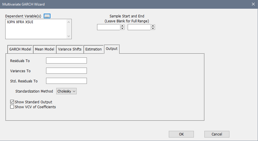 Wizards / ARCH/GARCH(Multivariate) Wizard |