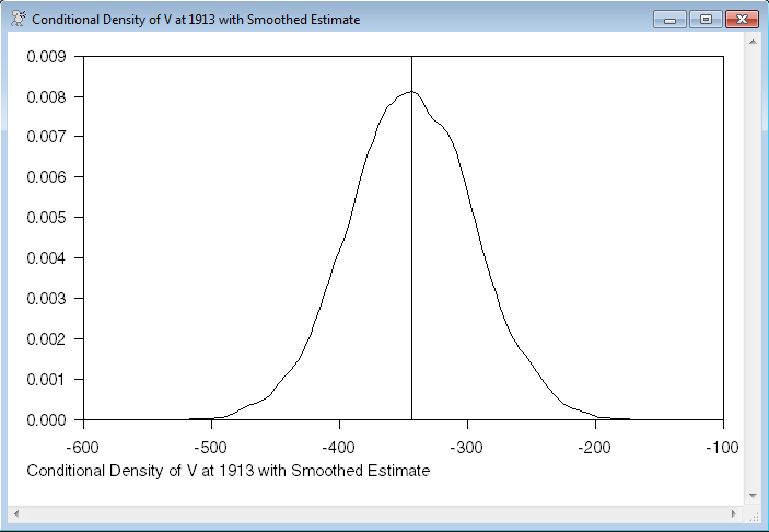 "Conditional Density of V at 1913 with Smoothed Estimate")