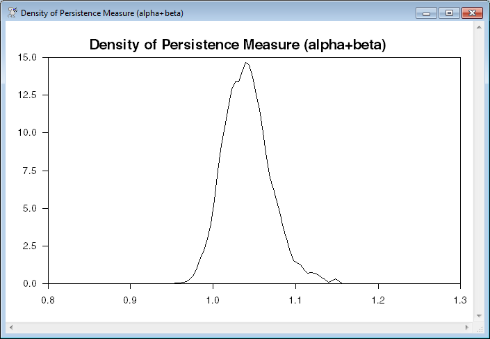 This is used for an estimated density of the persistence measure (ALPHA+BETA). We need to keep the values of the draws and the observation weights in order to use the DENSITY instruction.