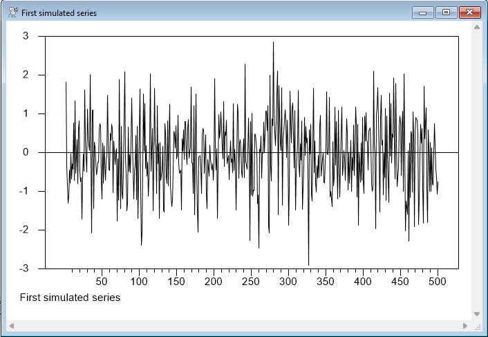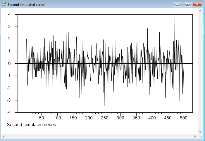 These graph the two simulated series and extract and graph the simulated variance of the first series. The results depend upon random number and so will differ from run to run unless you use the SEED instruction.