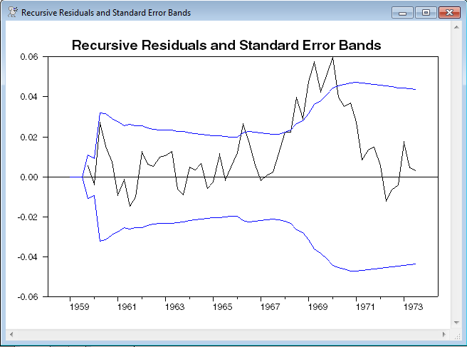 graph(header="Recursive Residuals and Standard Error Bands") 3