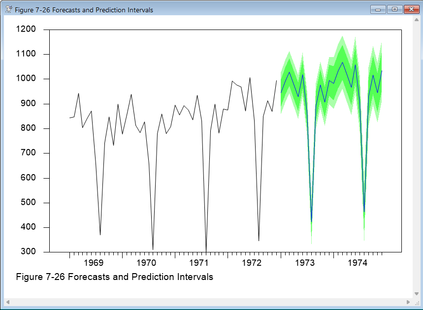 graph(footer="Figure 7-26 Forecasts and Prediction Intervals",ovcount=4,overlay=fan,ovsame) 6