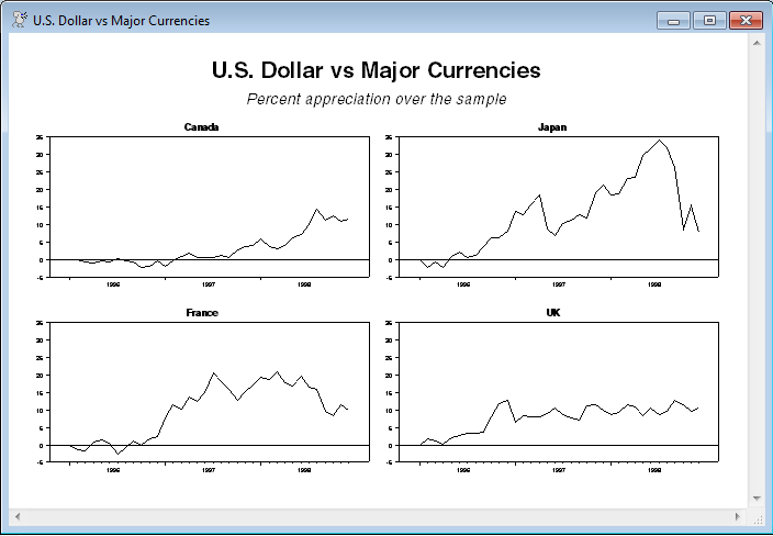 spgraph(vfields=2,hfields=2,header="U.S. Dollar vs Major Currencies",$)
