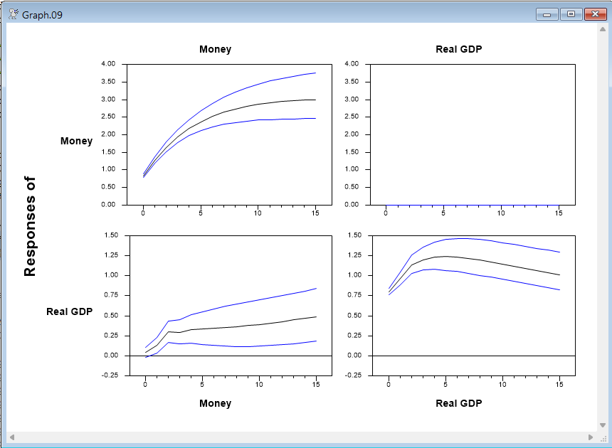 By construction, the response of Money to a real GDP shock is zero.