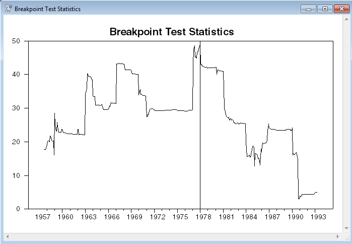 This graphs the F statistics, with a GRID value at the time of the largest break.