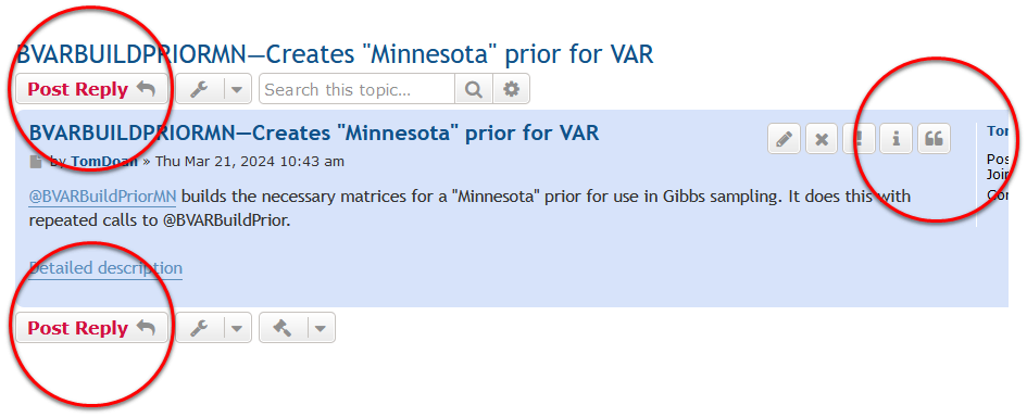 If you are a registered user you can create posts to the forum. These can either be a "reply" to an existing topic or a completely new topic. Note that "reply" does not mean you actually are replying to the last post in a topic—it simply means that you are making a new post on the topic. It helps everyone when a post is put in the correct location—questions about a paper, example or procedure which already have a topic should be added to that thread if possible.