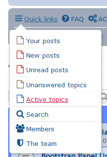 The drop down will look like this if you are logged in as a user. It will not have "Your posts" and "Unread posts" if you are a guest. The most common choice would be "Active topics" to see relatively recent posts.