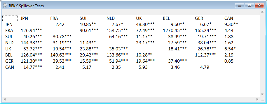 test(print,zeros,title="BEKK Spillover from "+rkeys(j)+" to "+rkeys(i))