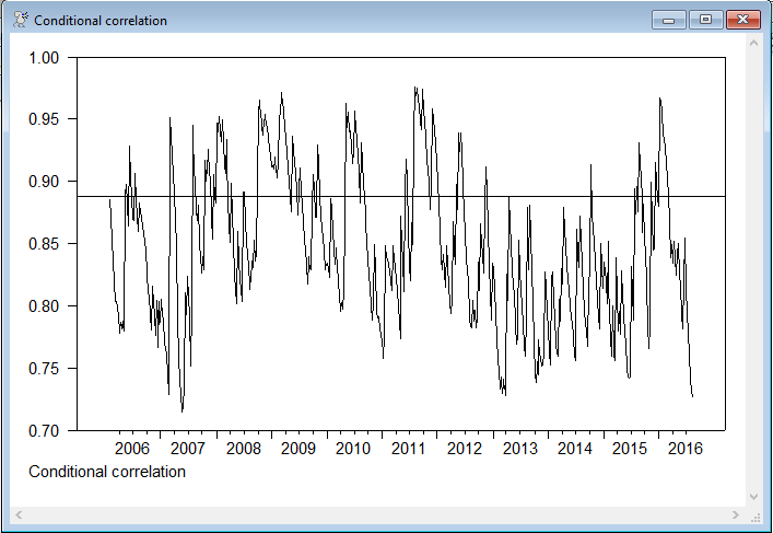 Graph of the conditional correlation with the correlation of the fixed VECM residuals shown.